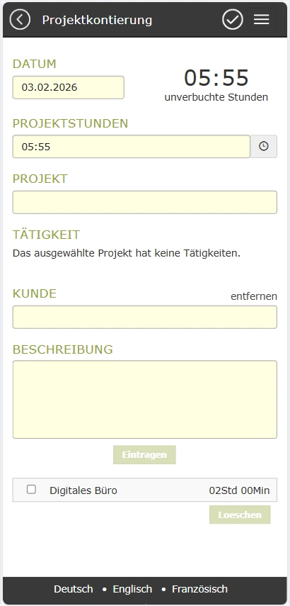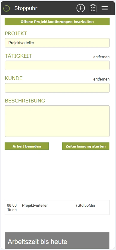 Nicht immer kann die Projektkontierung direkt nach dem Beenden eines Zeiteintrags erfolgen.